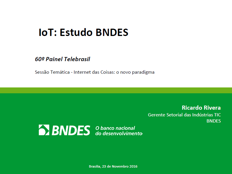 Palestrante: Ricardo Rivera, gerente setorial, BNDES Download: Apresentação loT: Estudo BNDS